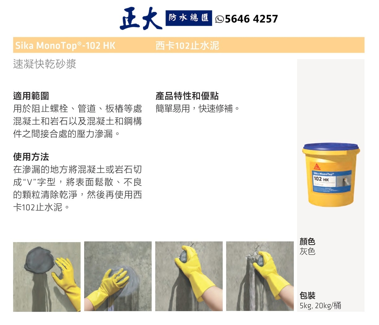 SIKA 西卡 MonoTop 102 HK 3分鐘極速止水泥