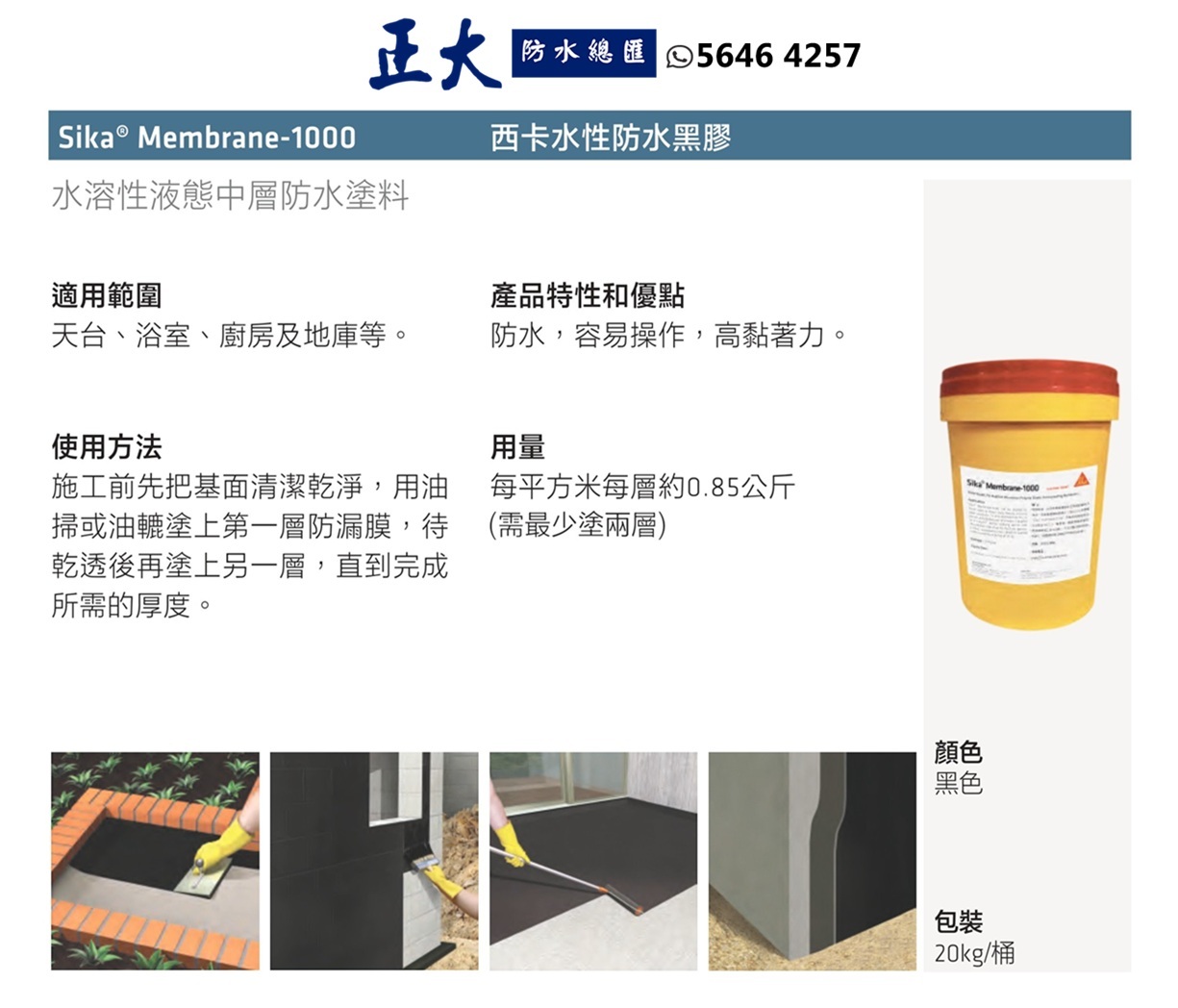 Sika 西卡 Membrane 1000 水性瀝青黑膠