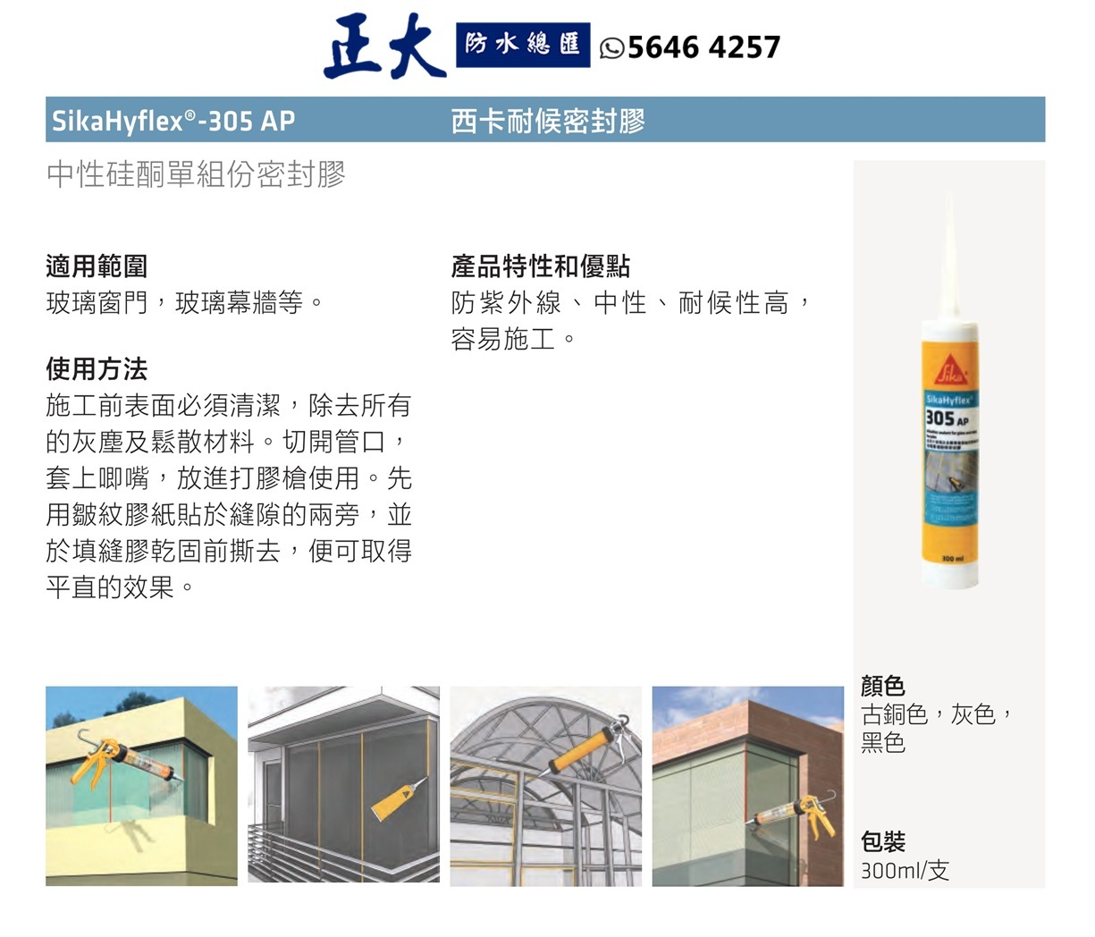 Sika 西卡 SikaHyflex 305AP 高性能耐候性矽酮密封膠