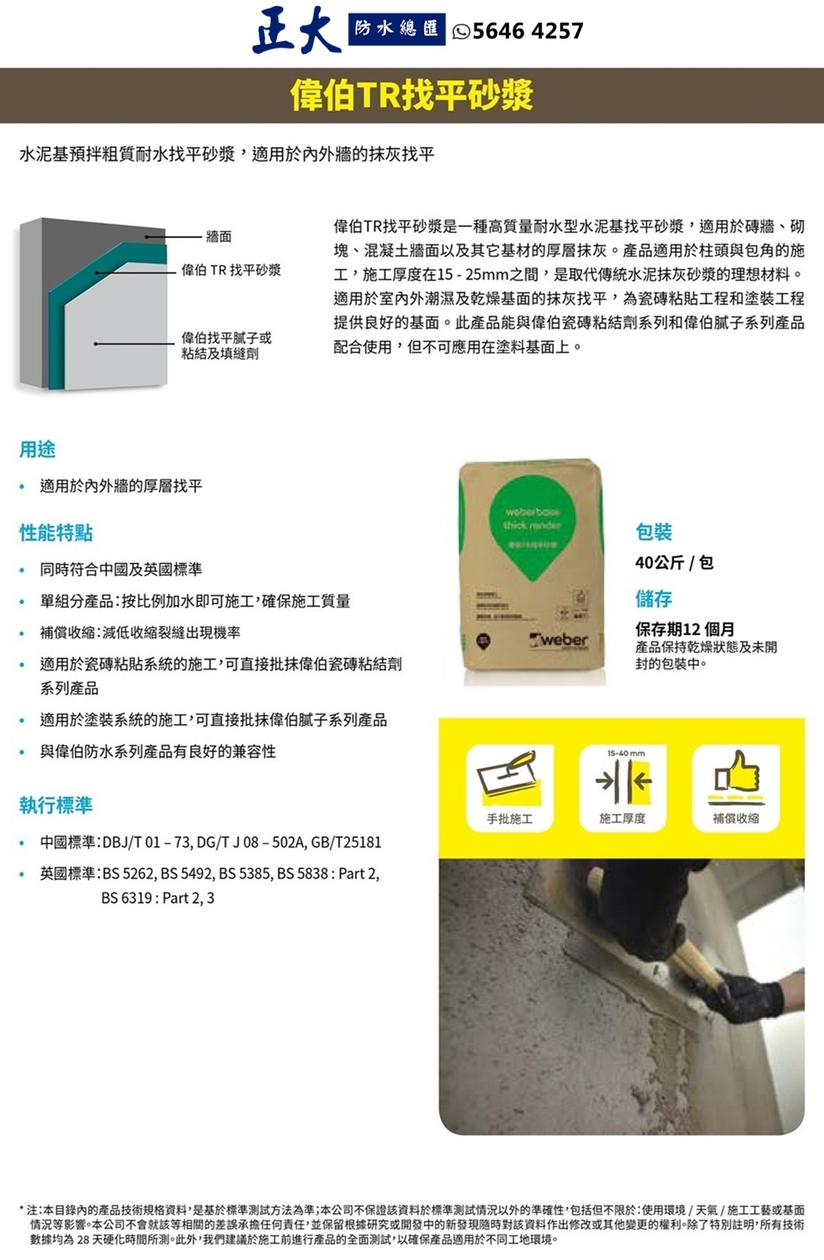 Weber 偉伯 Weberbase Thick Render TR 厚層找平砂漿