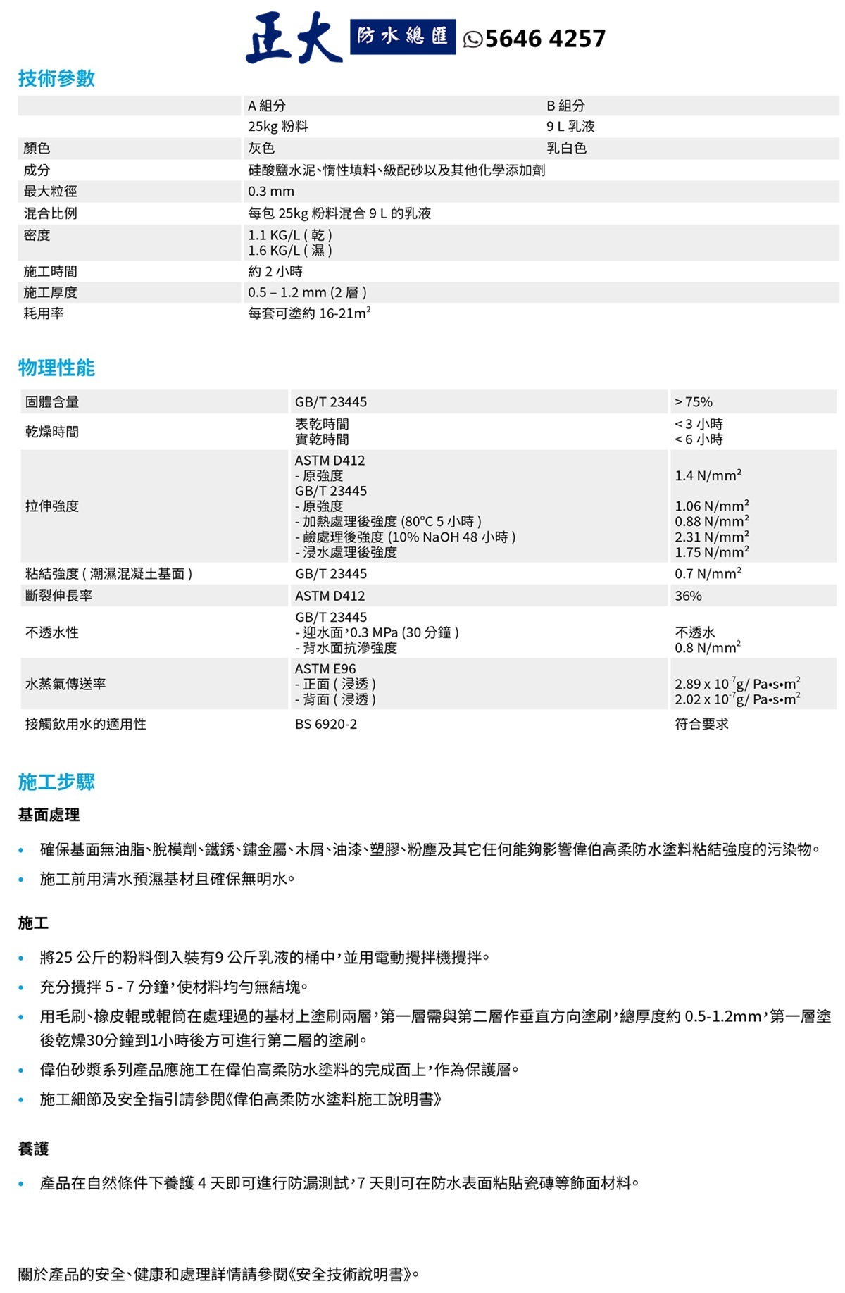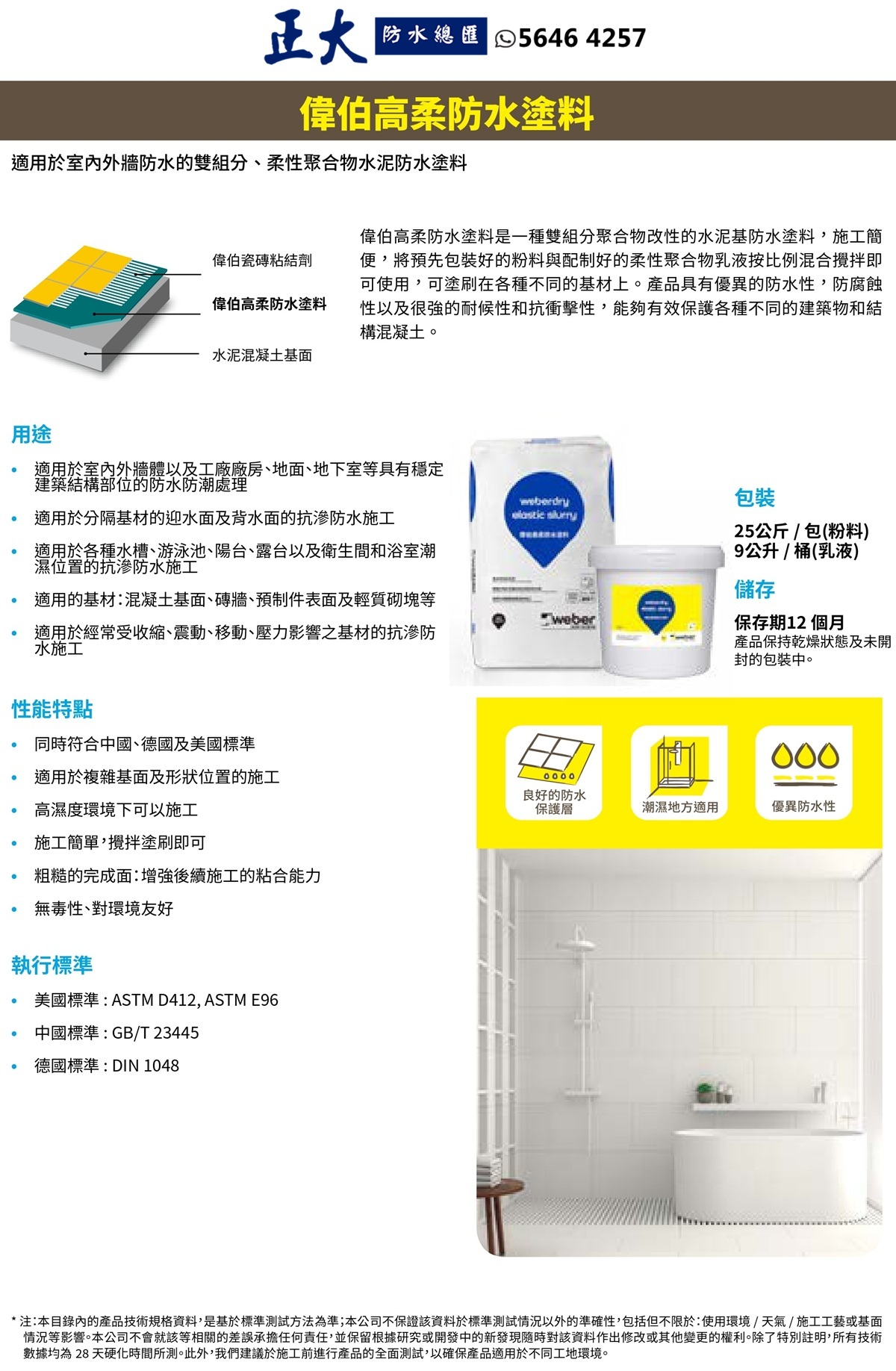 Weberdry elastic slurry(前稱: EMIX WP Elastic Slurry) 是一種雙組分乳膠改質水泥基塗料,使用方法簡單,只需將預先包裝的乾混粉末與配製好的柔性乳膠添加劑混合,然後將漿料塗覆在各種基材上即可。它能有效保護各種建築物和結構混凝土構件,具有優異的耐水性、耐腐蝕性、耐長期風化性和耐刮擦性。尤其適用於長期浸泡在水中的結構。