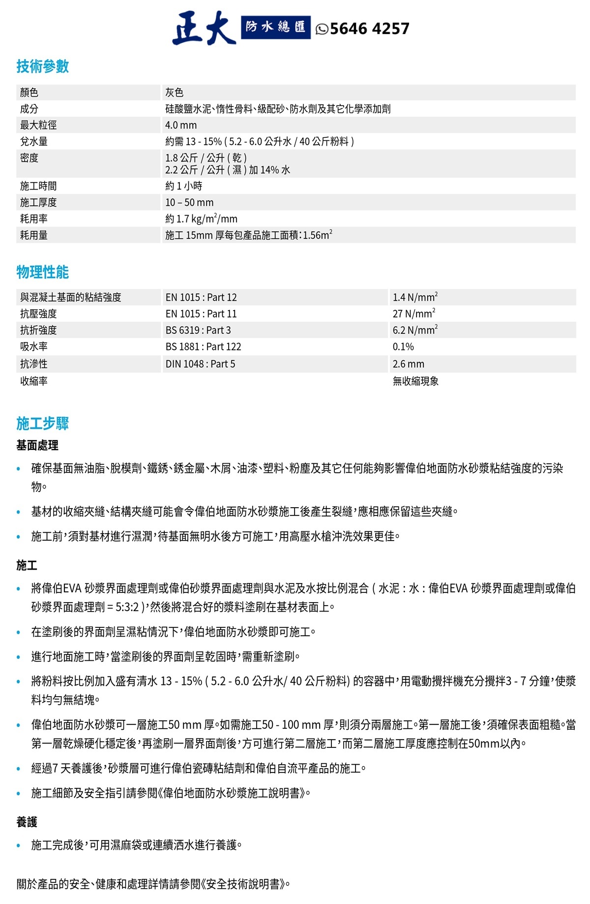 Weber 偉伯 Weberdry WP Screed 地面防水砂漿