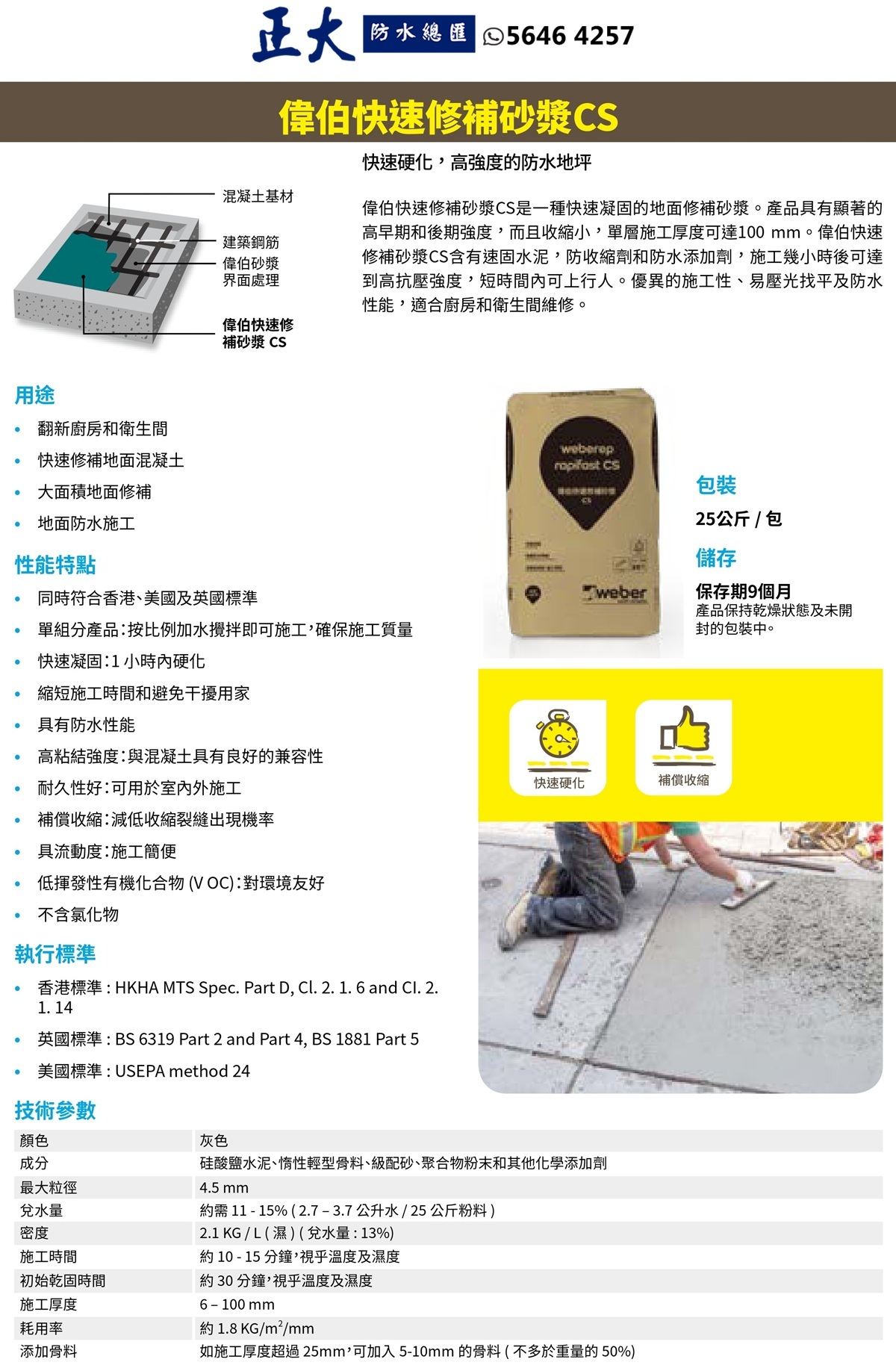 Weber 偉伯 Weberep Rapifast CS 快速修補砂漿