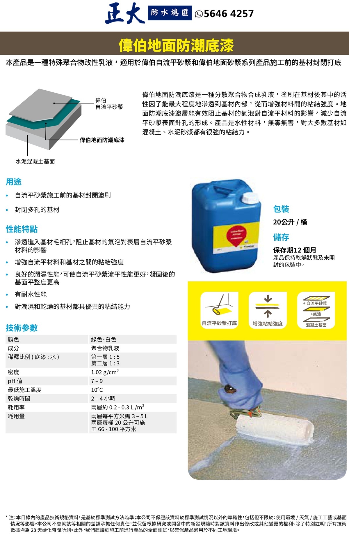 • 自流平底漆 -  在施工自流平英泥前的必須步驟