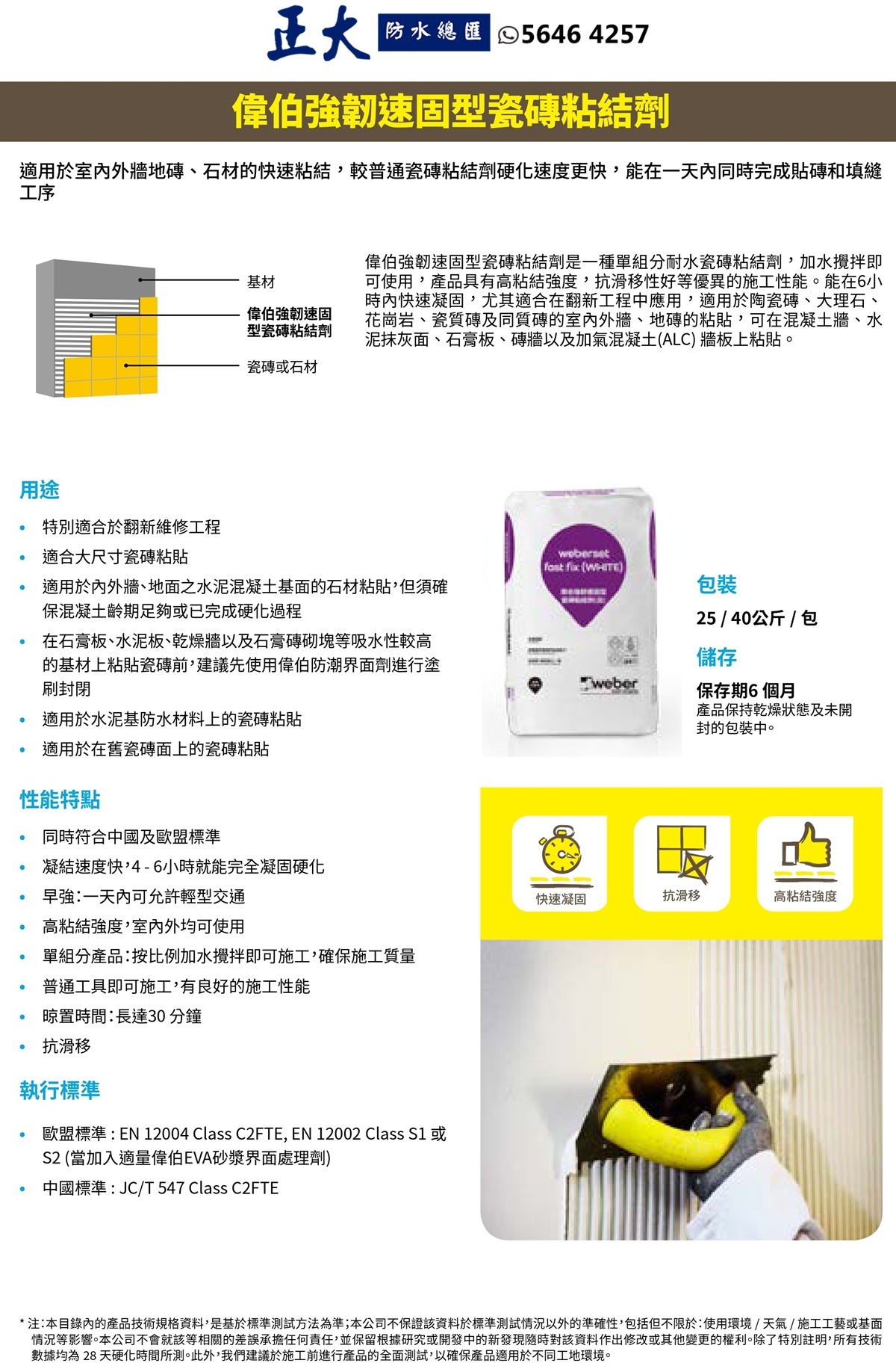 Weber 偉伯 Weberset Fast Fix 強韌速固型瓷磚粘結劑