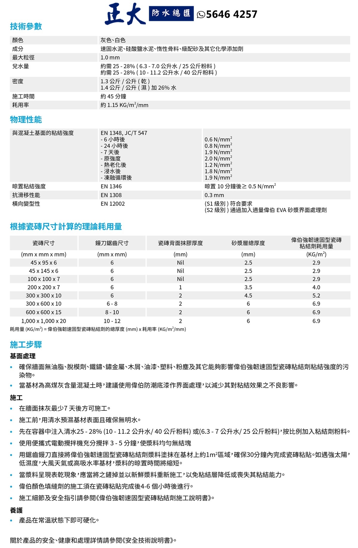 • 4-6小時內即可鋪上磁磚和勾縫