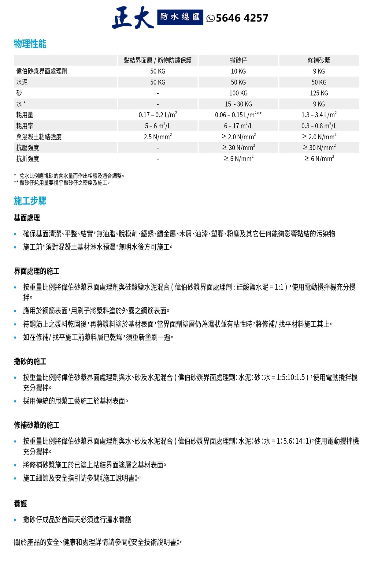 • 與水泥混合用作黏結層漿料,以促進抹灰層、灰泥和地面找平層的黏結